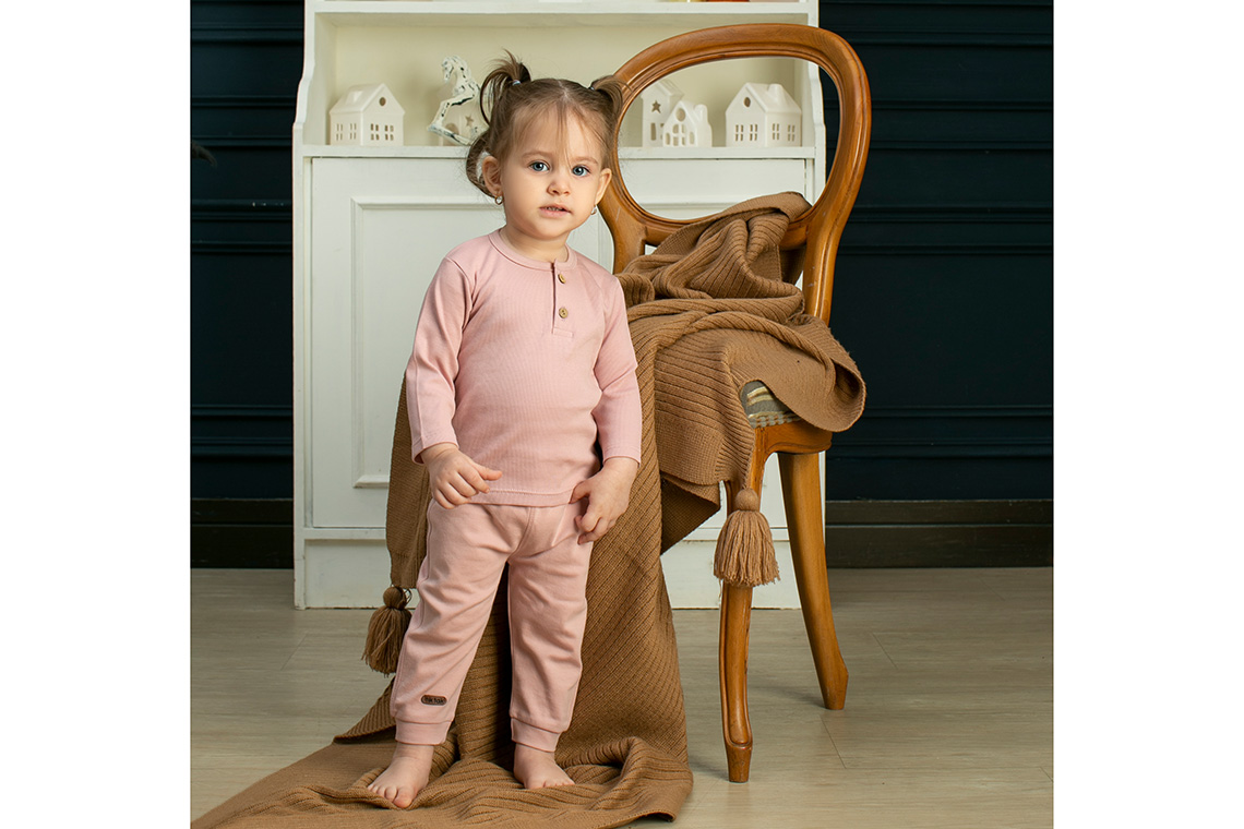 آستین بلند و شلوار دخترانه پسرانه کبریتی صورتی برند تیک تاک
